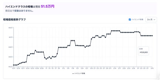 2026年1月5日に平均価格428,930円だったこちらの構成は、2月末で501,800円と、今年に入って大幅な値上がりを見せています。