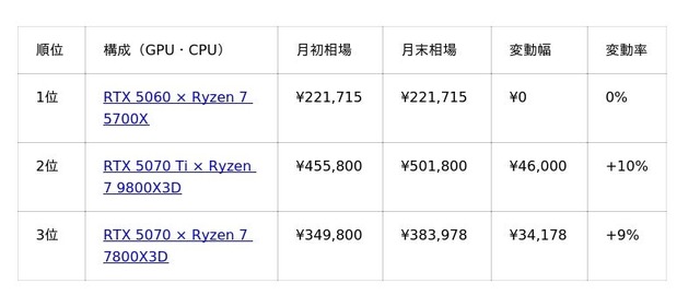 合同会社気づけば(代表:福田貫太)が運営する、国内最大級のゲーミングPC検索サイト『gg』は、2026年2月におけるゲーミングPC(BTO)相場価格の値動きをまとめた月次レポートを公開しました。