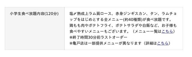 「小学生食べ放題」詳細