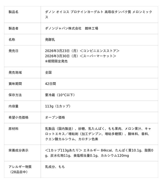 オイコス プロテインヨーグルトでは、幅広い方々においしく良質なタンパク質を補給いただけるよう、定番のラインナップに加え、毎年多彩な限定フレーバーを展開しています。今回新たに発売する「オイコス プロテインヨーグルト 高吸収タンパク質 メロンミックス」は、2026年最初の期間限定品であり、オイコスで初めて人気フルーツ“メロン”を採用したフレーバーとなります。