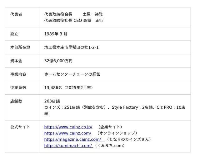 <株式会社カインズ 概要>