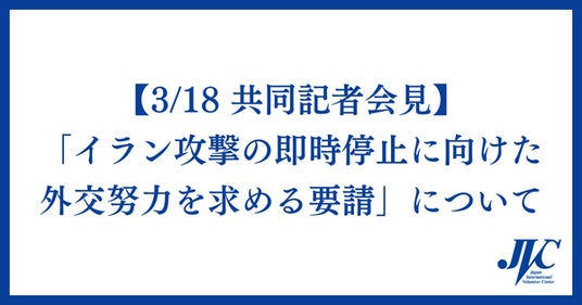 3月19日に行われる日米首脳会談に先立ち、国内の多くの団体と連名で、高市首相に「イラン攻撃の即時停止に向けた外交努力を求める」という趣旨の要請書を送ります。これにあたり、下記の要領で、記者会見(オンライン)を行います。
