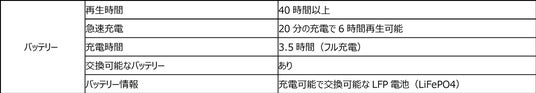 長時間のパーティーでも、途中で突然音楽が止まってしまう心配はありません。あらゆるシーンでの使用を想定し、1回の充電で最大約40時間の連続再生が可能です。また、充電が必要になった場合も、予備のバッテリーまたはACケーブルで簡単に充電することができます。