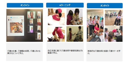 特定技能制度を活用し「日本で介護士として長く活躍できる人材」を育成することを目的に、デジタルツールと対面研修を融合させた独自の教育プログラムを構築しました。同社の教育スキームは「オンライン研修」「eラーニング(ABILI Clip)」「現地での実技研修」という三段構えで構成されています。オンライン研修では日本とインドを繋いだライブ感のある教育を、eラーニングでは本人のペースに合わせた反復学習を、そしてプログラムの最後には日本の専門トレーナーが現地に赴き、オンサイトでの実技研修を行うことで、深い理解と技術の定着を促しています。