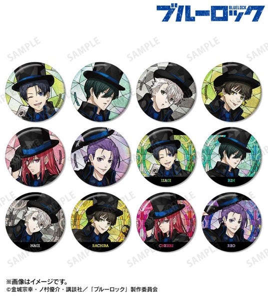 潔 世一、糸師 凛、凪 誠士郎、蜂楽 廻、千切 豹馬、御影 玲王の描き下ろしイラストを新たなタッチで魅力的に表現し、グリッター加工を施した缶バッジに仕上げました。