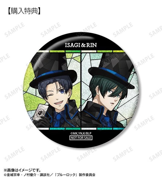 当商品を1BOX、または単品にて1BOX相当数ご注文ごとに、予約購入特典として「潔&凛 怪盗団ver. Aure Glass 75mmグリッター缶バッジ AMNIBUS限定特典」を付属いたします。