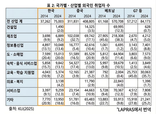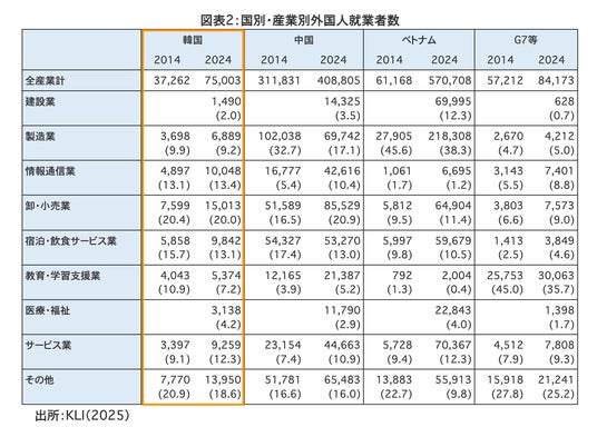 ※독립행정법인 노동정책연구・연수기구「일본에서 일하는 한국인의 현황 - 한국노동연구원 보고」참고