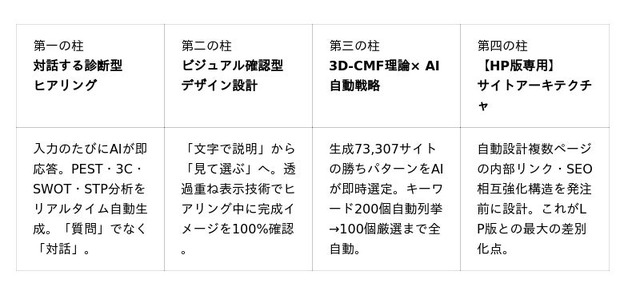 発注者がホームページを「頼む」のではなく「一緒に作る体験」を通じて勝利を確信する──そのための設計思想がこのシステムに込められています。