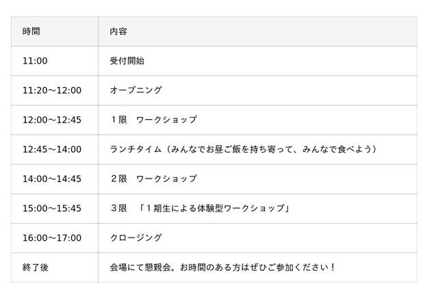 ・現地参加の方は、外での活動、昼食会がありますので、準備をして来場するようお願いします・オンライン参加の方は、一部参加できないセッションがあります。予めご承知おきください