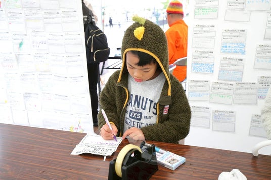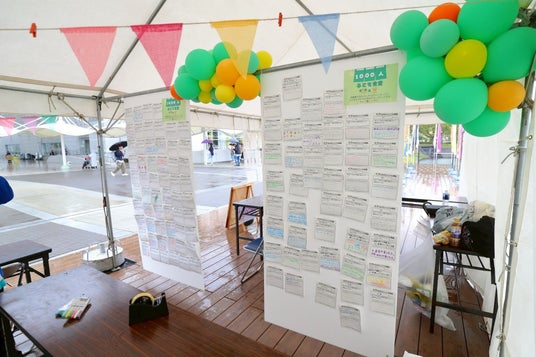 食券として利用した後は子どもたちにメッセージを書いてもらい会場に貼り出します。