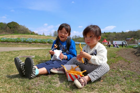 青空の下食事を楽しむ子どもたち