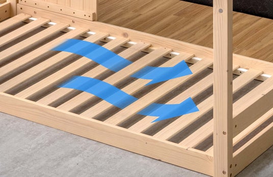 床板には通気性に優れた「すのこ」を採用しています。湿気がこもりやすい日本の住環境においても効率よく風を通すため、カビの発生を抑え、一年中清潔で快適な睡眠環境をキープします。