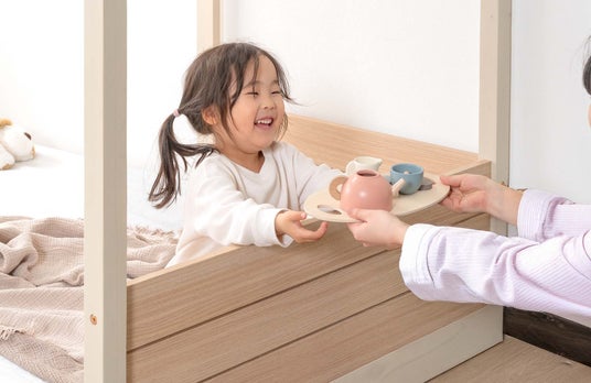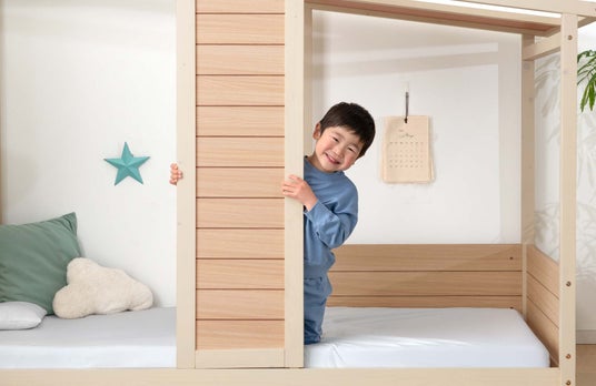 あえて遊びの要素を残した設計により、お子さまの発想次第で「自分だけのおうち」や「お店屋さん」など、多彩な使い方が可能です。ベッドそのものが創造力を育む遊び場のような空間を生み出します。