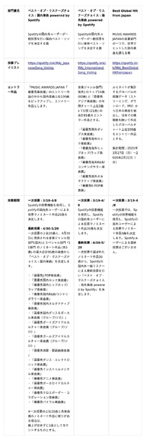 「ベスト・オブ・リスナーズチョイス」2部門では、Spotifyユーザーによる投票を通じて受賞作品が決定します。また、主要6部門のひとつである「Best Global Hit from Japan」では、Spotify上での投票によりノミネート作品が選出されます。