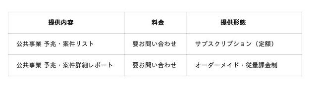 建設・公共ビジネス特化型の新規案件探索サービス「Info Hub」「公共事業 予兆・案件リスト」ラインナップの一例