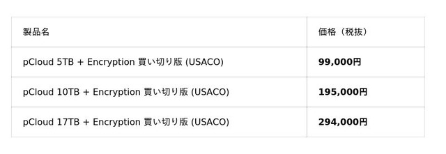 全プランに「pCloud Encryption」が含まれる、ユサコオンラインショップ限定の買い切り版パッケージです。