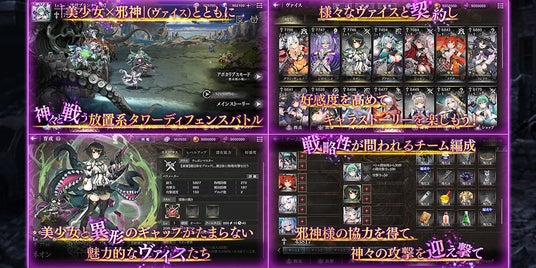 「美少女×邪神」 クトゥルフ神話に登場する邪神や身体から生えた触手を自在に操る異形の少女たちと共に、神々と戦う放置系タワーディフェンスバトルゲームです。