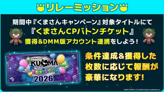 2026年2月2日(月)15:30~4月20日(月)23:59まで、『くまさんキャンペーン』の開催を記念して「くまさんキャンペーン開催記念! リレーミッション」を開催中です。