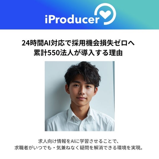 一方、サロン側にも事情があります。日々の業務と並行しながら求職者一人ひとりの問い合わせに丁寧に対応することは容易ではなく、返答の遅れが優秀な人材の離脱につながるケースも少なくありません。当社はこうした採用現場の課題を技術で解決すべく「iProducer Studio」を開発。2026年3月19日時点で累計550法人への導入を達成し、 美容業界における"AIによる採用改革"の新たなスタンダードとして、サービスを展開しています。