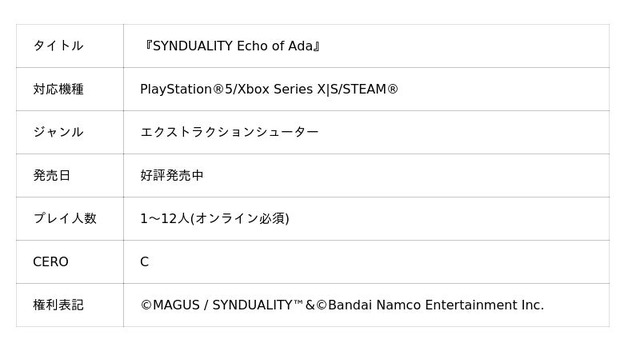 株式会社バンダイナムコエンターテインメントは、PlayStation(R)5/Xbox Series X|S/STEAM(R)『SYNDUALITY Echo of Ada』に関して、日本時間2026年3月19日(木)より、最新シーズンSEASON4「CROSS ROADS(クロスロード)」の配信を開始したことをお知らせいたします。SEASON4「CROSS ROADS」では、新たな探索マップ「汚染森林・晴」および新規ロケーション「サンジョベーゼアジト」を追加したほか、メイガスの新たな強化要素「メイガス拡張メモリ」が登場。物語がひとつの区切りを迎え、本作が新たな局面へ進む節目のシーズンとして、今後の展開につながる各種機能・コンテンツを実装しております。