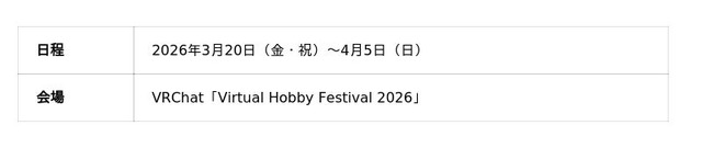 バーチャルホビーフェス2026公式サイト:https://vr-hobbyfes.jp/