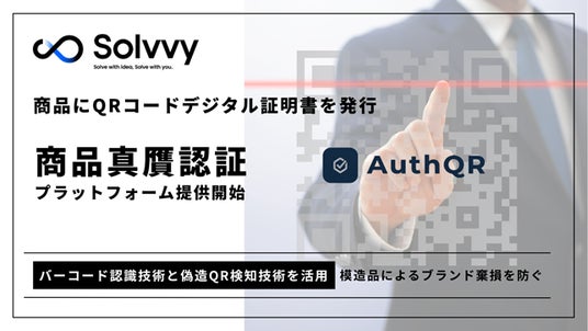 Solvvy株式会社(本社:東京都、代表取締役:安達慶高、以下「当社」)は、グループ企業である株式会社メディアシークが持つバーコード認識技術と偽装QR検知技術を活用した商品真贋認証プラットフォーム「AuthQR」の提供を開始しました。