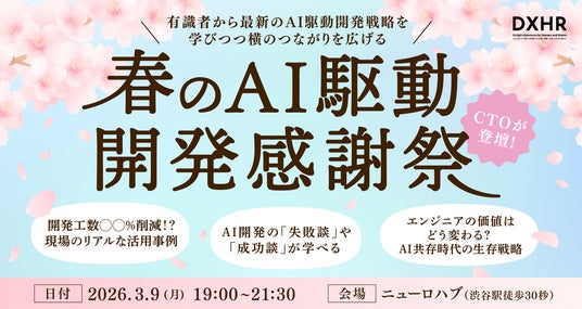 DXHR株式会社(本社:東京都渋谷区、代表取締役:前田 一成、以下 DXHR)は、2026年3月9日(月)、当社が運営するコワーキングスペース「NeuroHub(ニューロハブ)」にて、エンジニア向けイベント「AI駆動開発感謝祭」が開催されたことをお知らせいたします。