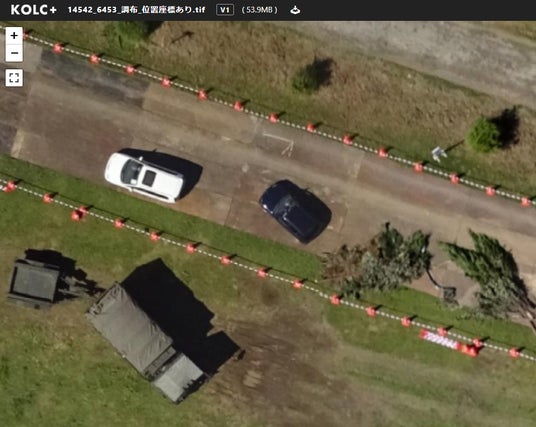 また、GeoTIFF(オルソ画像)の処理エンジンの実装も見直し、現場に設置された三角コーンを識別できるレベルの解像度に改善しました。より正確な現況把握に活用頂けます。