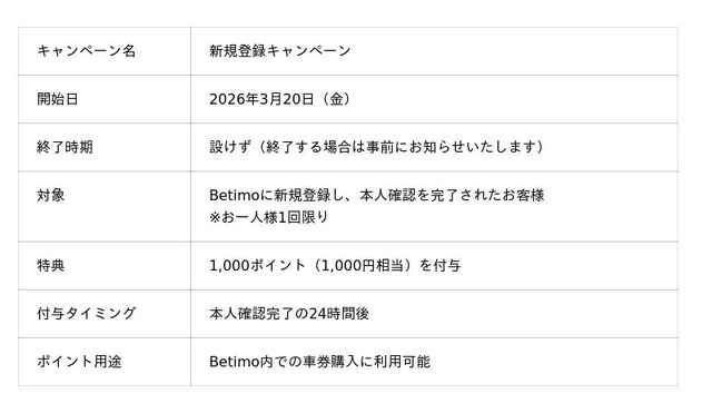Betimo 新規登録キャンペーン概要