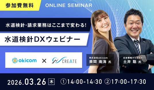 不動産テックを推進する日本情報クリエイト株式会社(本社:宮崎県都城市、代表取締役社長:辻村 都雄、証券コード:4054)は、2026年3月26日(木)に無料オンラインセミナー(以下ウェビナー) 『水道検針・請求業務はここまで変わる!水道検針DXウェビナー』を開催いたします。
