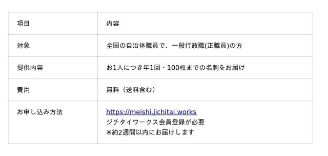 自治体職員の方々を元気にするツールとして、年に1回、100枚の名刺を無料で作成することができます。2021年のサービス開始以降、大変多くの自治体職員の皆様にご利用いただいております。