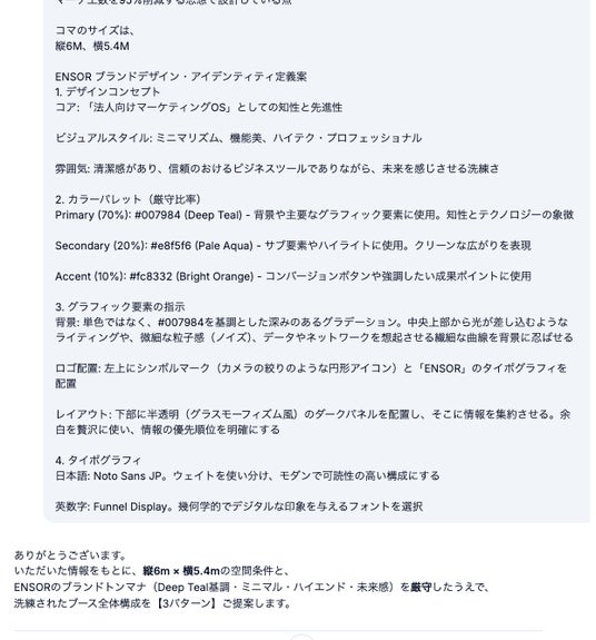 REHATCH株式会社(本社:東京都千代田区、代表取締役:迫田 亮太)は、同社が提供するマーケティングAI OS「ENSOR(エンソー)」に、展示会ブースおよび装飾ツールのデザインを0から検討する際の支援機能「展示会ブース&装飾ツール デザイン提案」を新たに追加したことをお知らせいたします。