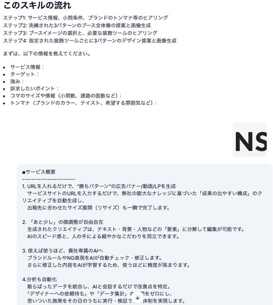 - ラフ作成:ブランド理解済みAIとの対話で、最適な訴求軸とコピーを生成