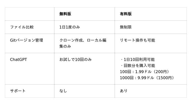 ファイル比較、SSHターミナル、Gitバージョン管理などプロ向け機能や、AIに対応したChatGPT機能も搭載しています。