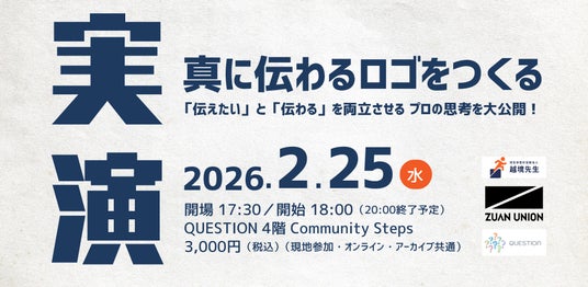 本実践は、2026年2月25日、QUESTION(京都市中京区)にて開催された「実演!真に伝わるロゴをつくる ~『伝えたい』と『伝わる』を両立させるプロの思考を大公開~」の中で行われました。