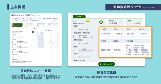 ・通勤経路スマート登録機能(あらかじめ設定した通勤経路の基準をもとに、合理的な通勤経路を自動で登録)