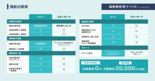 株式会社ナビタイムジャパン(代表取締役社長:大西啓介、本社:東京都港区)は、従業員の正確な通勤費を一括でシステム管理できるWebサービス『通勤費管理クラウド by NAVITIME』にて、2026年3月31日(火)(予定)より、安価で手軽に導入できる新しい料金プラン「ライト」を提供開始いたします。