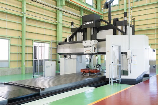新設された第6工場には、新たに5面加工門形マシニングセンタMCR‐A5CII(オークマ)と10tクレーンを導入しました。