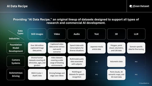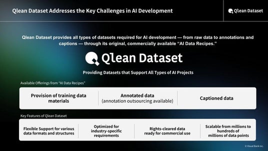 This release is part of the "AI Data Recipe" lineup, Qlean Dataset’s original series of high-quality data products for AI development. It is designed for practical AI implementation phases, ranging from the automated generation of audiobooks to the deployment of Automatic Speech Recognition (ASR) systems that support the digital archiving of historical documents. Visual Bank and amanaimages remain committed to supporting the research and development of AI capable of understanding and generating diverse expressions by providing premium audio and linguistic data that capture Japan’s cultural heritage.
