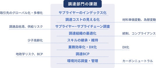 脱炭素(カーボンニュートラル)への対応、人権デューデリジェンス、頻発する災害へのBCP対策、そして2026年1月施行の「取引適正化法」への準拠など、外部環境の変化により、調達部門が処理すべき情報量は近年、爆発的に増加しています。