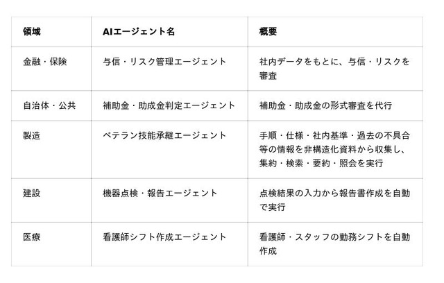バックオフィス業務の自動化・効率化に向け、企業自らがAIエージェントを活用する参考となるよう、幅広い業界・領域のアプリを体験いただけます。