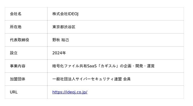 株式会社IDEOJ(本社:東京都渋谷区、代表取締役:野秋 裕己、以下「IDEOJ」)は、パスワードレスのファイル暗号化サービス「カギスル」のMicrosoft Outlook アドインを、Microsoft AppSource(旧 Office ストア)にて公開しました。Outlookのメール作成画面から直接ファイルを暗号化・添付でき、パスワード付きZIPの送付(いわゆるPPAP)を"メールの操作だけ"で置き換えることが可能になります。