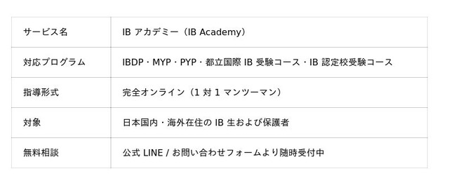 株式会社 Linksenpai(所在地:東京都渋谷区、代表取締役:吉田志織)が運営する国際バカロレア (IB)専門のオンライン家庭教師サービス「IB アカデミー」は、2026 年 3 月、公式ウェブサイト (https://www.ib-academy.jp/)を正式公開いたしました。