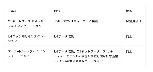 ■「エッジAIゲートウェイ インテグレーションサービス」のメニューと価格