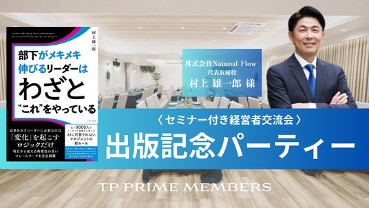 株式会社Natural Flow 代表取締役 村上 雄一郎氏の出版を記念し、TP PRIME MEMBERSにて特別パーティを開催。新たな知見と挑戦の軌跡を祝し、志ある経営者同士の交流の場を提供いたします。