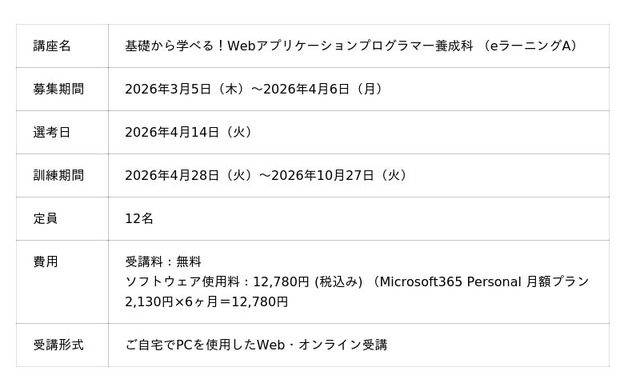 基礎から学べる! Webアプリケーションプログラマー養成科とは