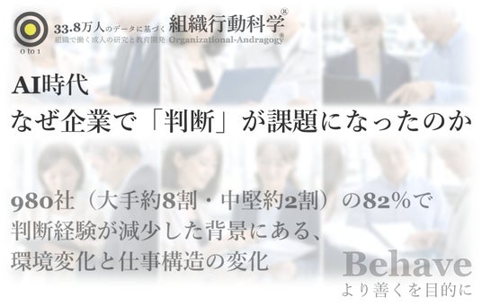 33.8万人・980社の分析で見えているのは、企業の82%で判断経験が減っているという事実だけではありません。