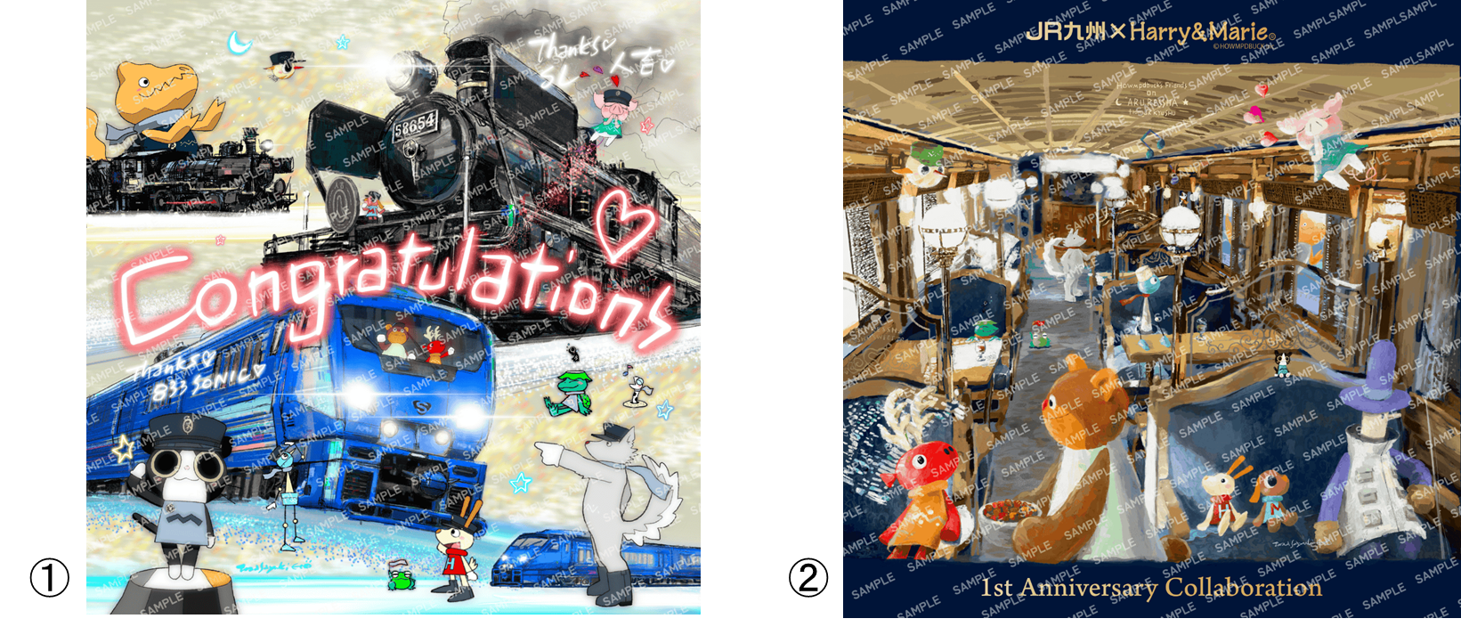 コラボ 1 周年を記念して、新作「或る列車」の Harry&Marie コラボ NFT が販売開始!また、コラボレーション開始より、各シーズンで過去に販売してきたコラボ NFT(音声入りアニメーション 動画)を一斉販売いたします。各シーズンごとに 2 種お買上げで贈呈した「コンプリート NFT」もプレゼント!