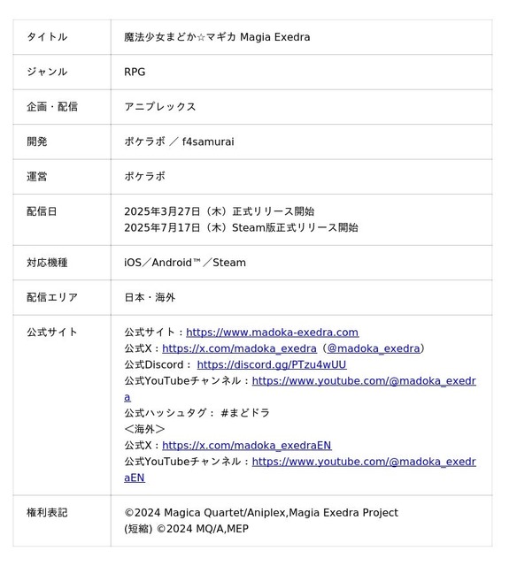 <『魔法少女まどか☆マギカ Magia Exedra』概要>