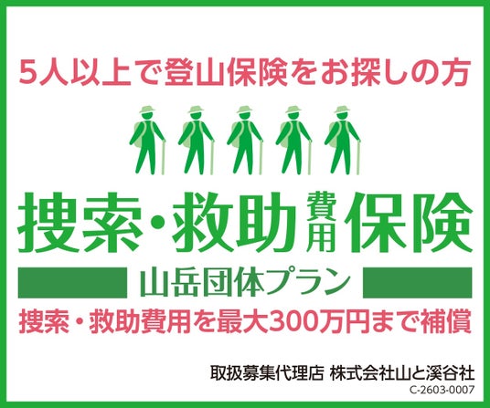 なお、2025年4月に販売を開始した「山と溪谷の登山保険」も引き続き販売しています。この保険は正式名称「捜索・救助費用保険」に「通信物の電子交付および保険料のクレジットカード払込みに関する特約」を付加した保険商品です(引受少額短期保険業者:ABC少額短期保険株式会社)。年払保険料は3,300円です。